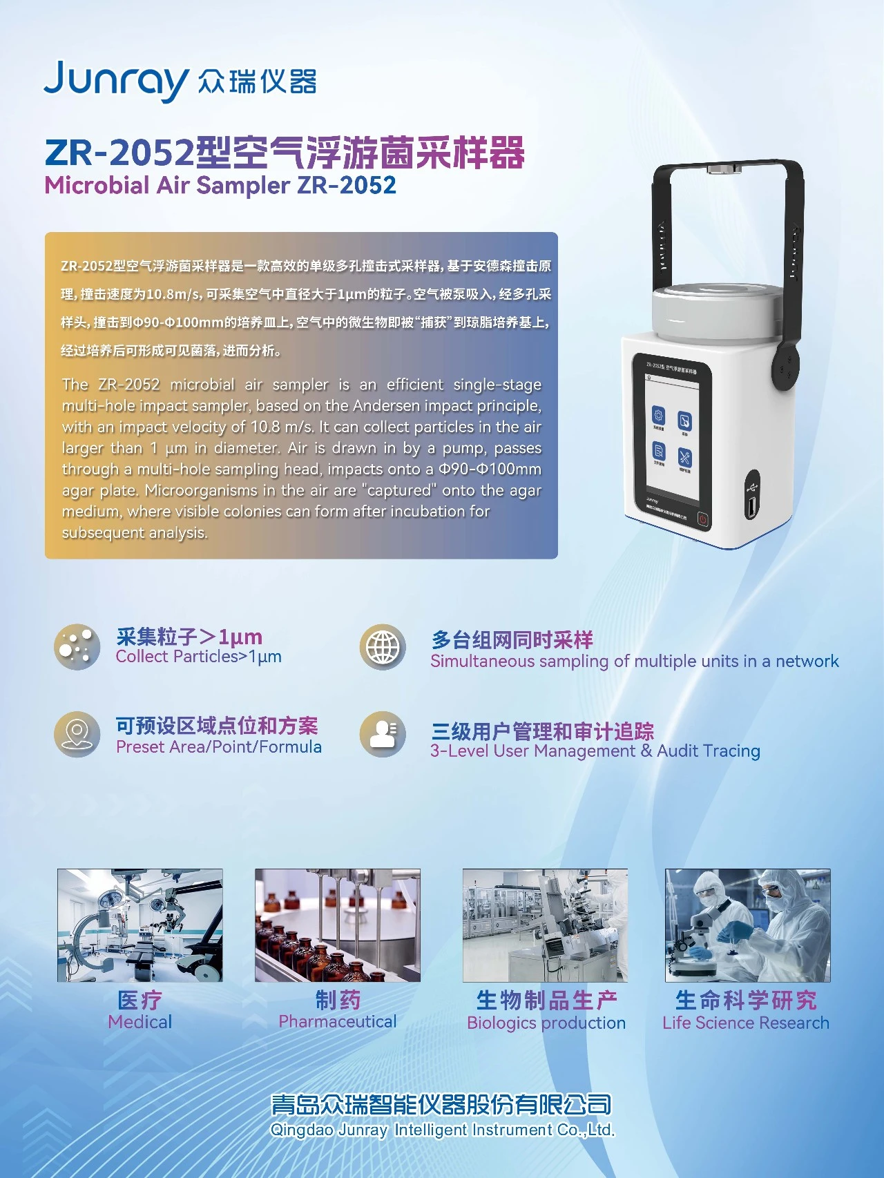 青岛众瑞紧扣展会主题,围绕制药行业合规化、精准化管控需求,集中展示了制药行业洁净室受控环境检测整体解决方案。展品覆盖高效过滤器检漏仪器、尘埃粒子计数器、浮游菌采样器、气流流形测试仪、微生物限度检验仪等,其中尘埃粒子计数器凭借“高精度+智能化”优势,吸引大批制药企业驻足咨询。