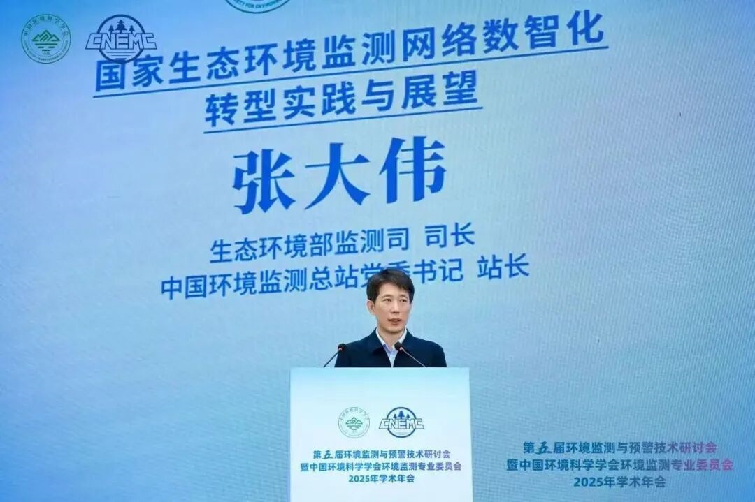 会上,生态环境部生态环境监测司司长、中国环境监测总站站长张大伟作了题为《国家生态环境监测网络数智化转型实践与展望》的主旨报告。他系统总结了过去一年来国家生态环境监测网络在数智化转型方面的实践成果,重点介绍了在构建感知、运控、数据、应用四大系统方面取得的进展。