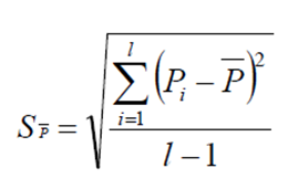 对某一水平浓度的样品在l个实验室内进行测定,实验室间相对标准偏差按如下公式进行计算。